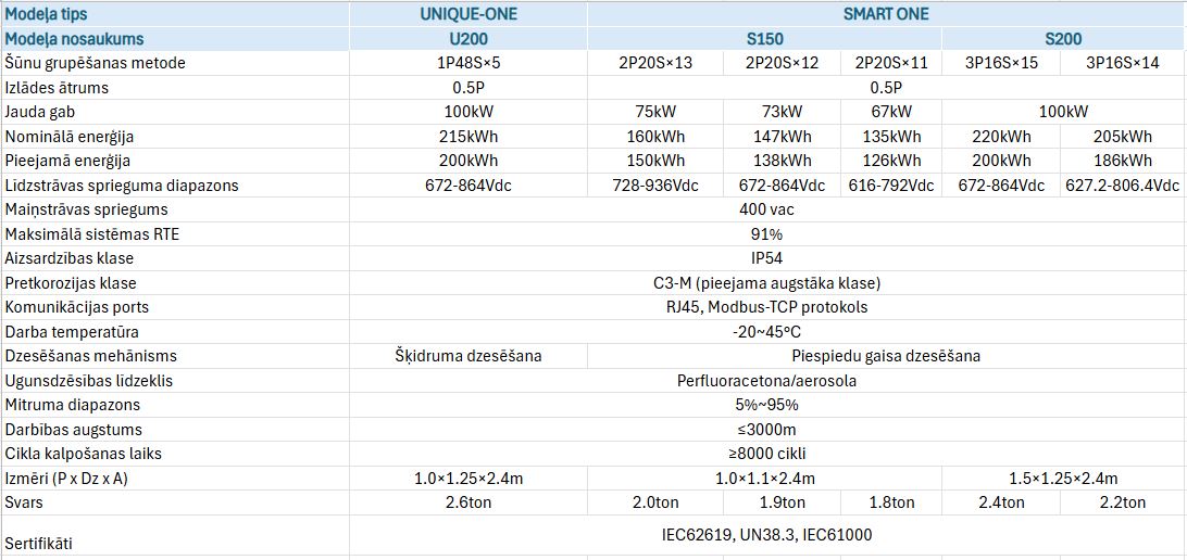 - Viena konteinera jauda 3.42MWh, 4.56MWh, 5MWh